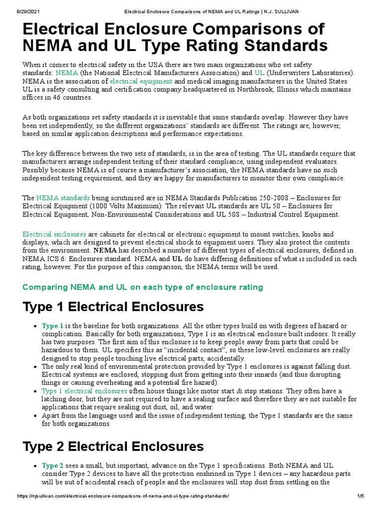 Electrical Enclosure Ratings NEMA vs UL PDF Safety